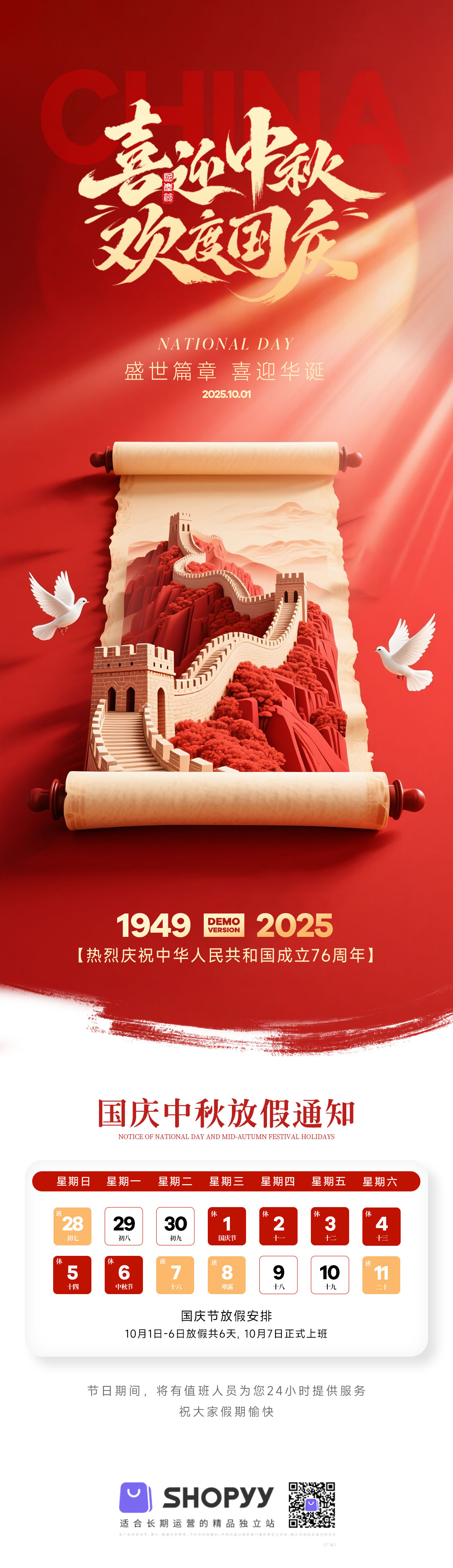 時間:2025-09-26【國慶放假通知】致敬家國,共赴美好假期